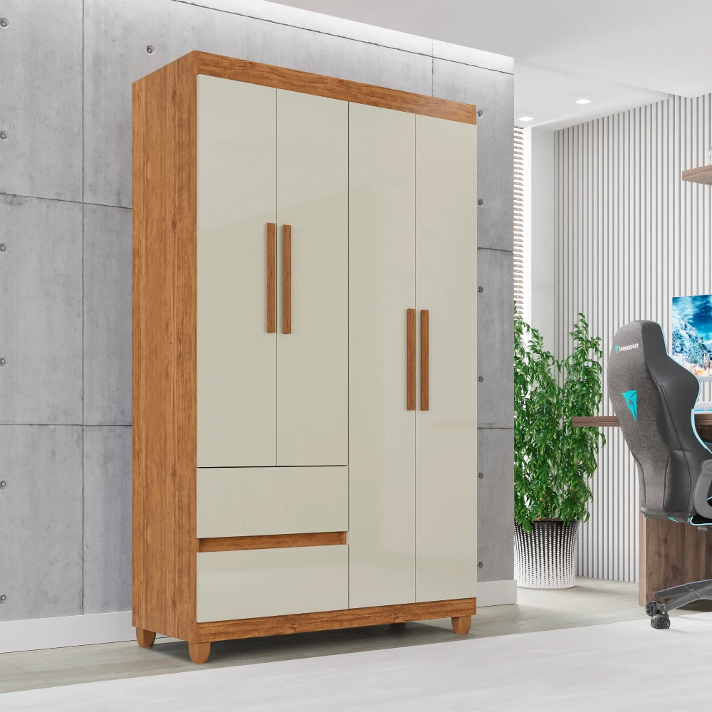 4 portas com dobradiças metálicas.