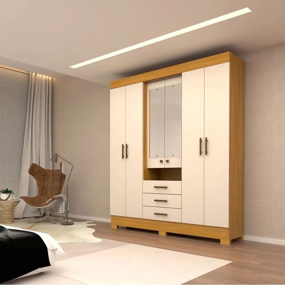 Material: 100% MDF Número de Portas: 6 Portas Número de Gavetas: 3 Gavetas Possui Prateleiras: 10 Prateleiras Material dos Pés: Plástico