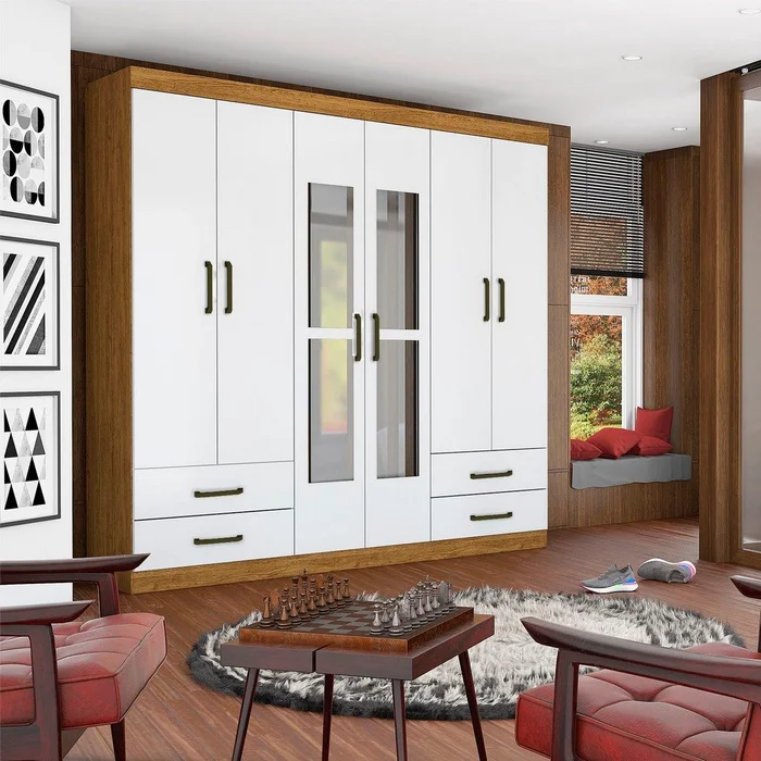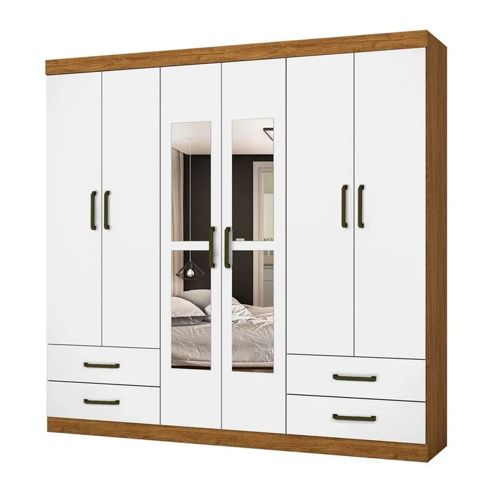 – Portas: 06 portas com dobradiças de aço, sendo duas com espelho