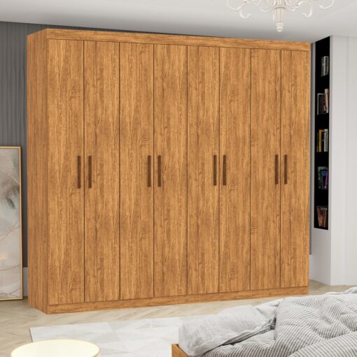 – Quatro gavetas com corrediças metálicas – Oito portas com dobradiças de pressão – Dois cabideiros – Pintura UV – MDP